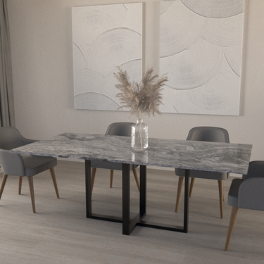 The Studio Dine Rectangle table features a sleek metal base that combines durability with modern design. Its minimalist style makes it a versatile centerpiece, ideal for both contemporary and classic dining spaces. Crafted for stability and ease of maintenance, this table offers a refined dining experience with understated elegance.