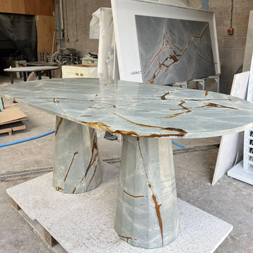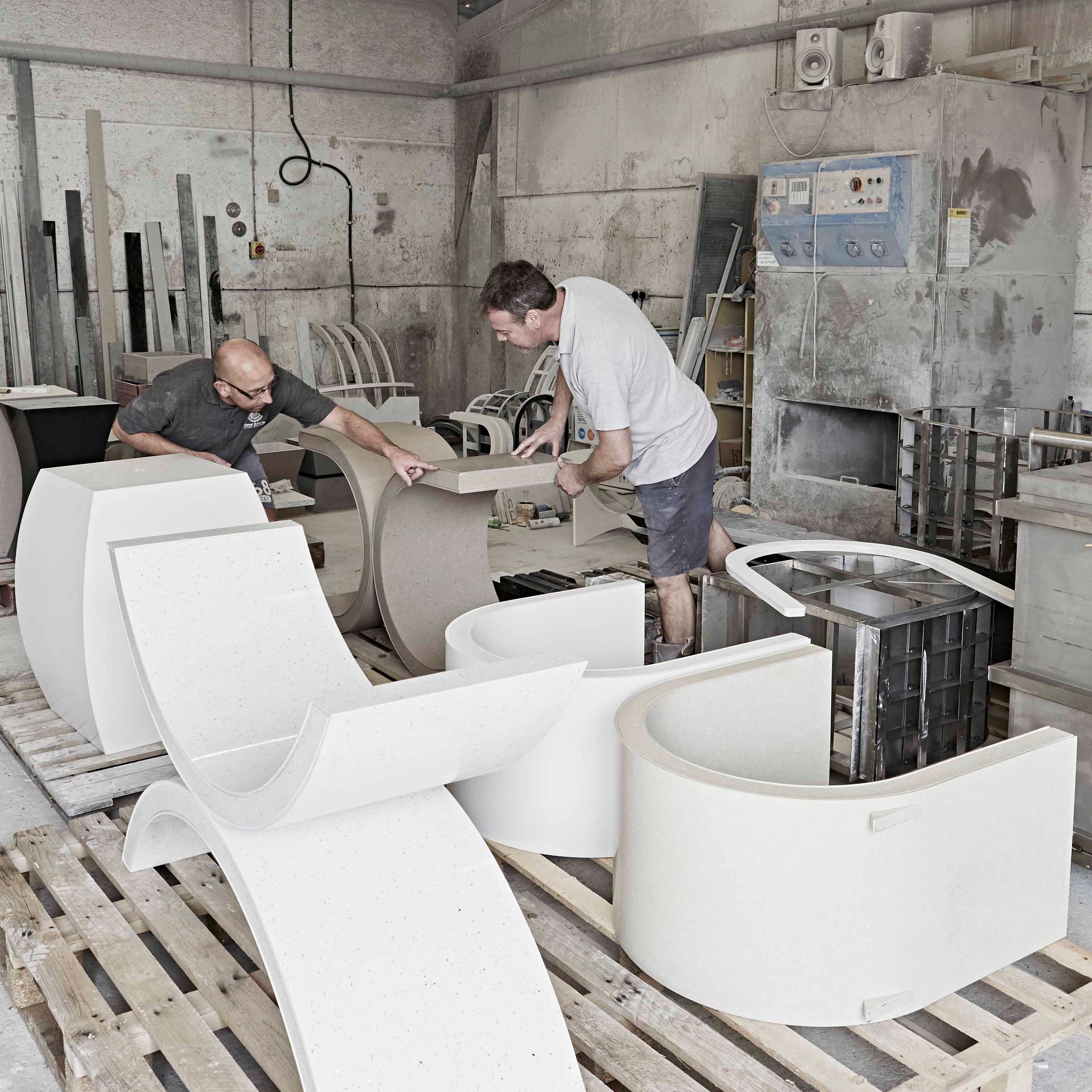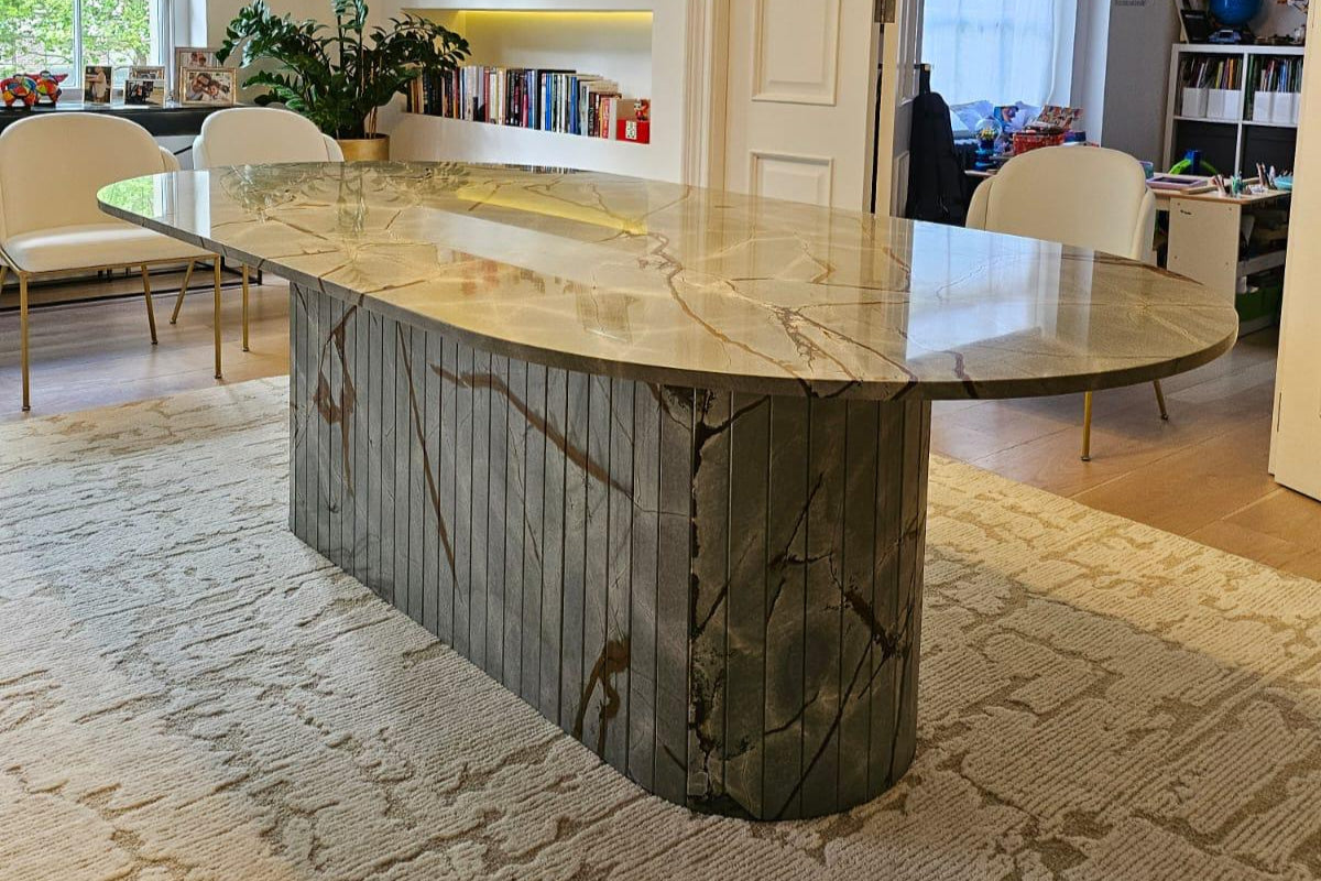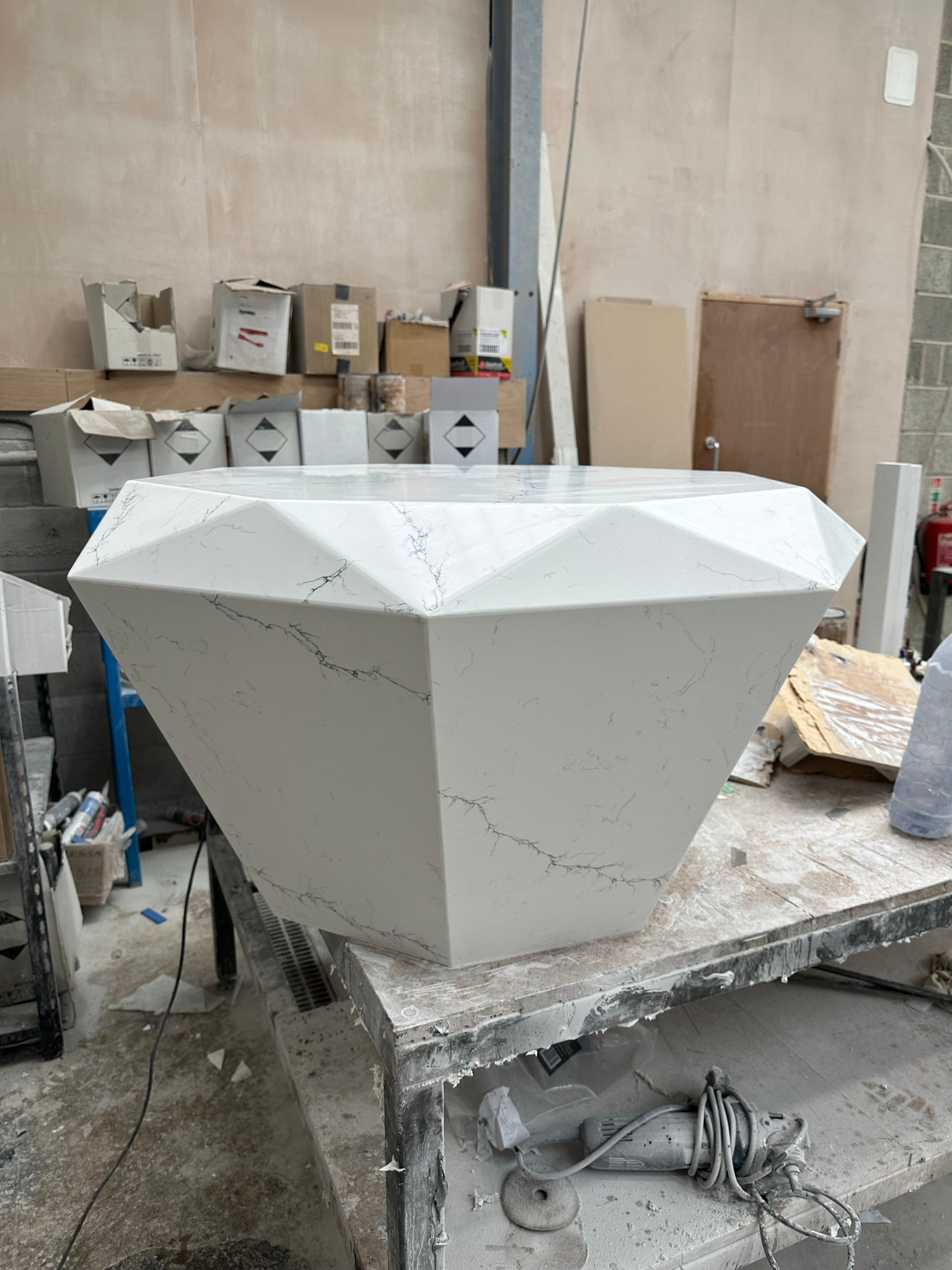 We also hold a rare capability — the ability to bend quartz — allowing us to create unique, bespoke designs that push the boundaries of what stone furniture can be.