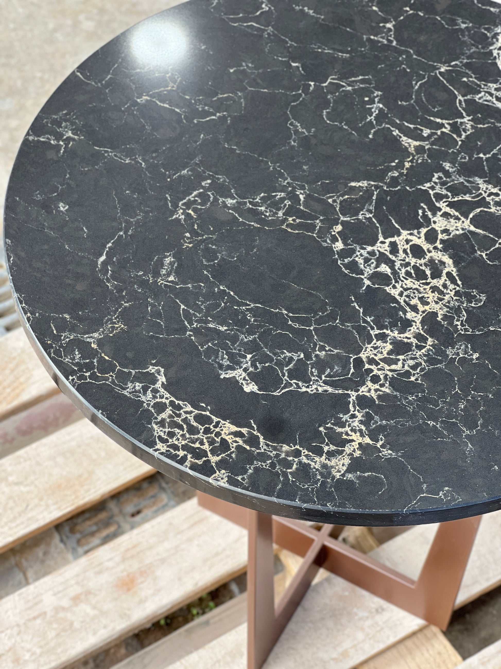 Material: Quartzform Vanilla Noir quartz with Matte Bronze Metal Base
