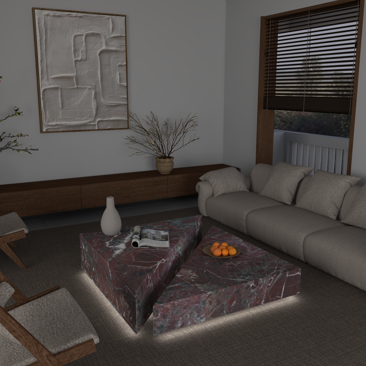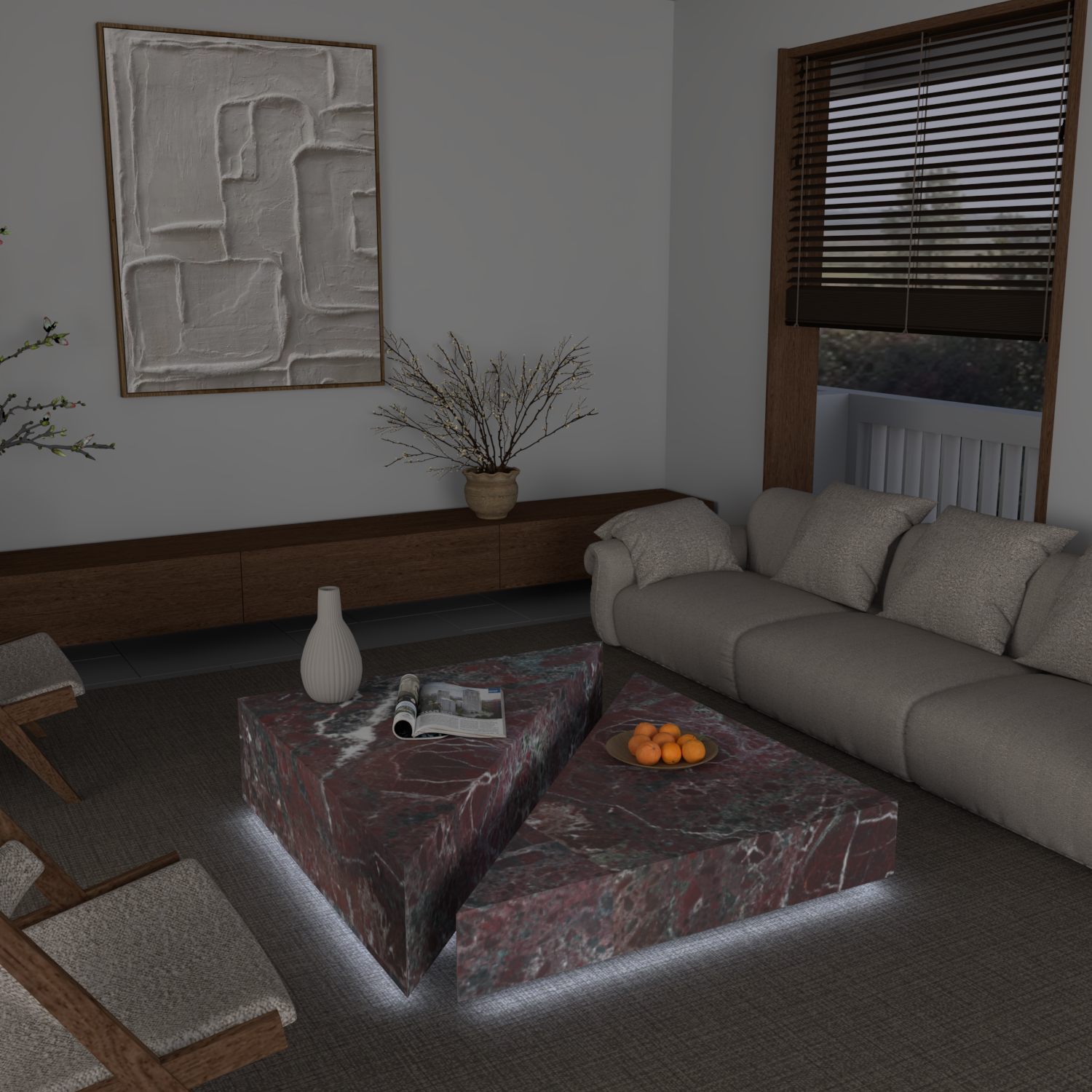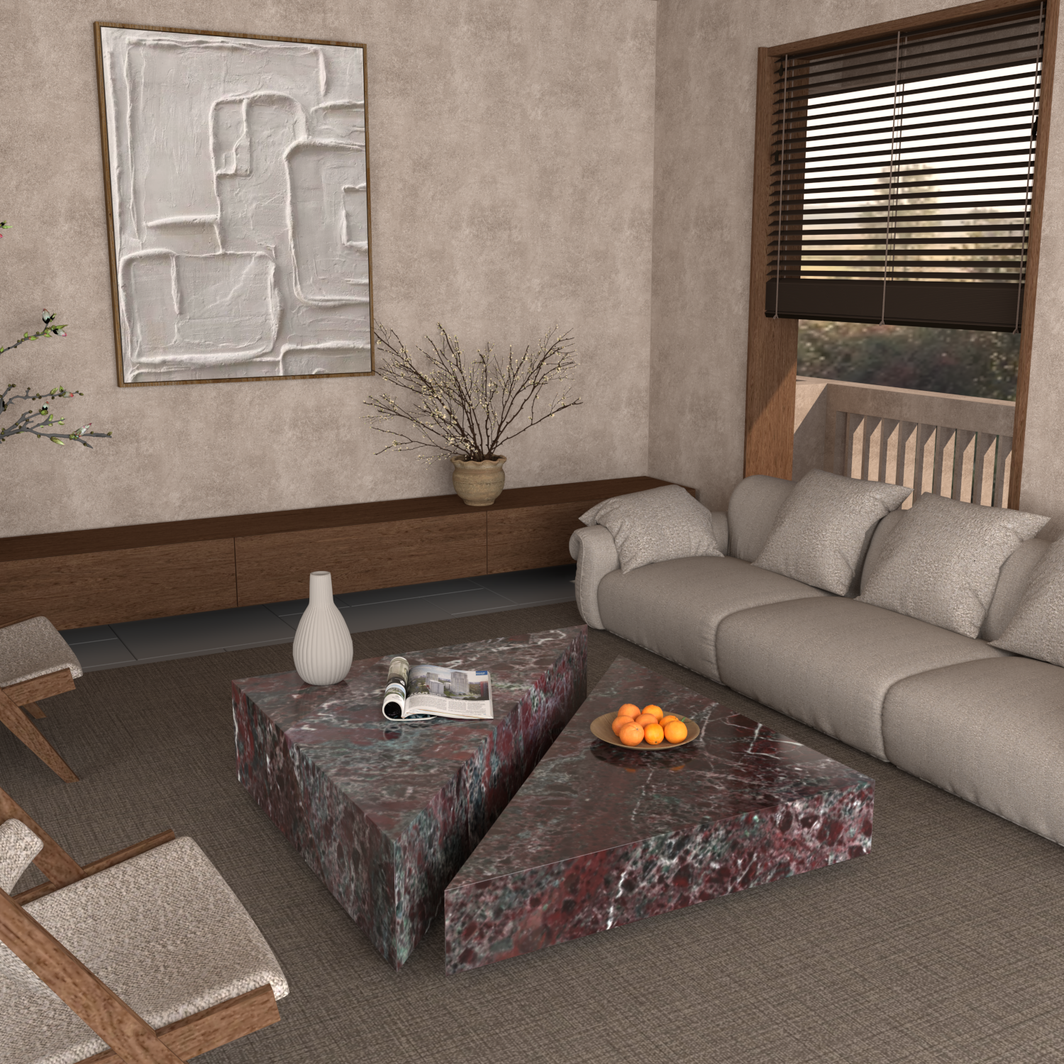 The Château Duo coffee table brings together geometry and grace in a striking, split design. Two angular forms sit in quiet balance, separated just enough to create a sense of tension and lightness—as though they’re gently hovering within the space.