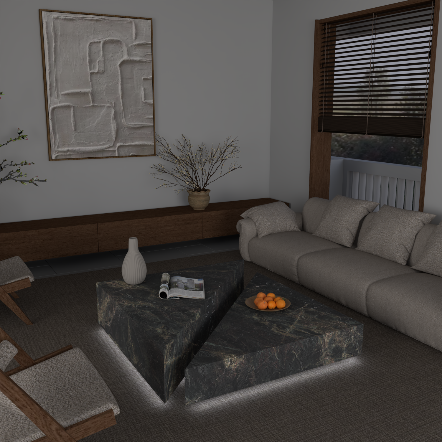 The Château Duo coffee table brings together geometry and grace in a striking, split design. Two angular forms sit in quiet balance, separated just enough to create a sense of tension and lightness—as though they’re gently hovering within the space.