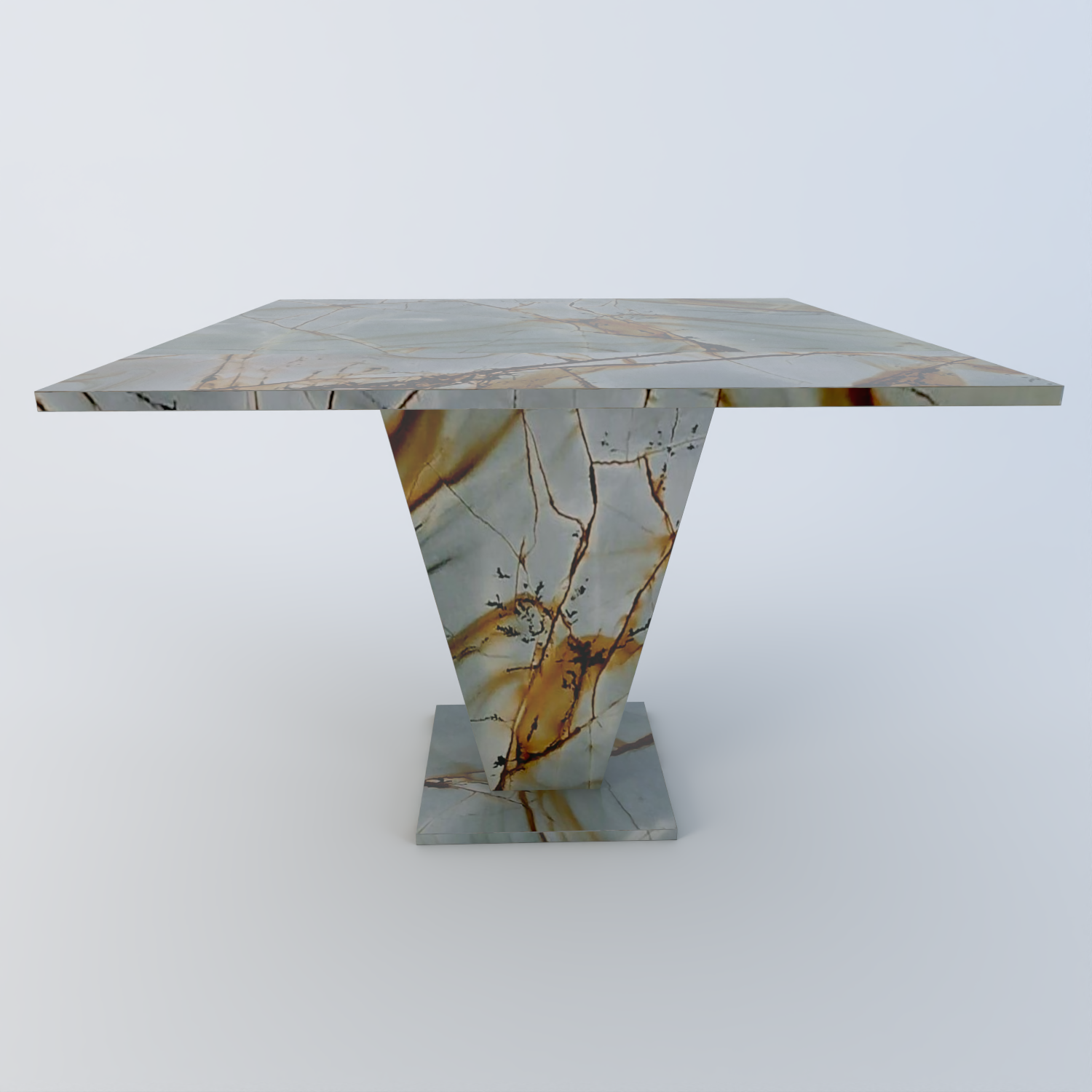 Perfect for intimate dining the Crescendo base is an inverted pyramid that forms the basis for either a traditional square table top or opt for a softer look with a round top and matching round floor stand.