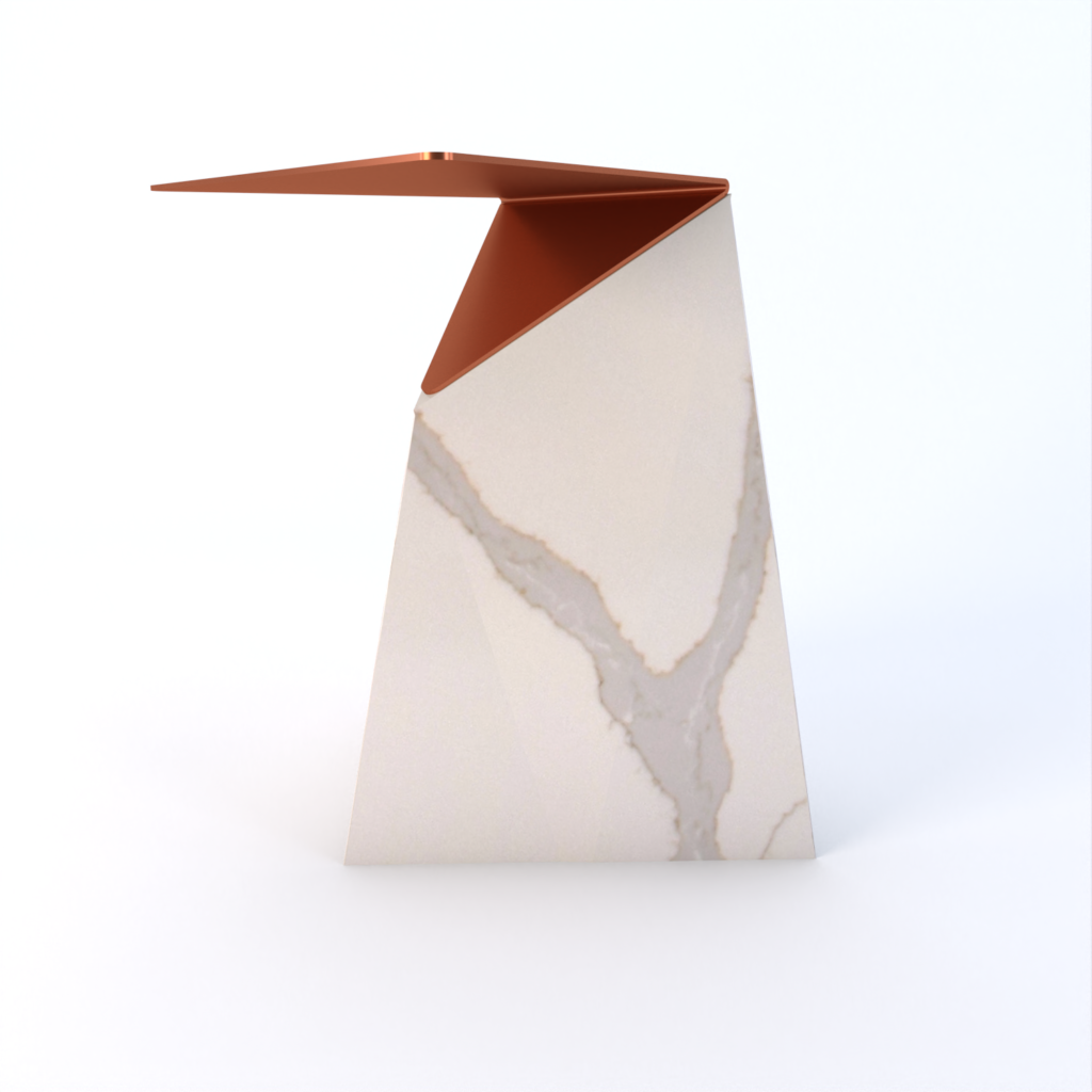 Delta has been based on the famous plane wing and combines a pyramid base with colour co-ordinating sleek looking metal top. Another striking angular design with precision cut mitred edges that allows the material pattern to follow the angular lines of the base.