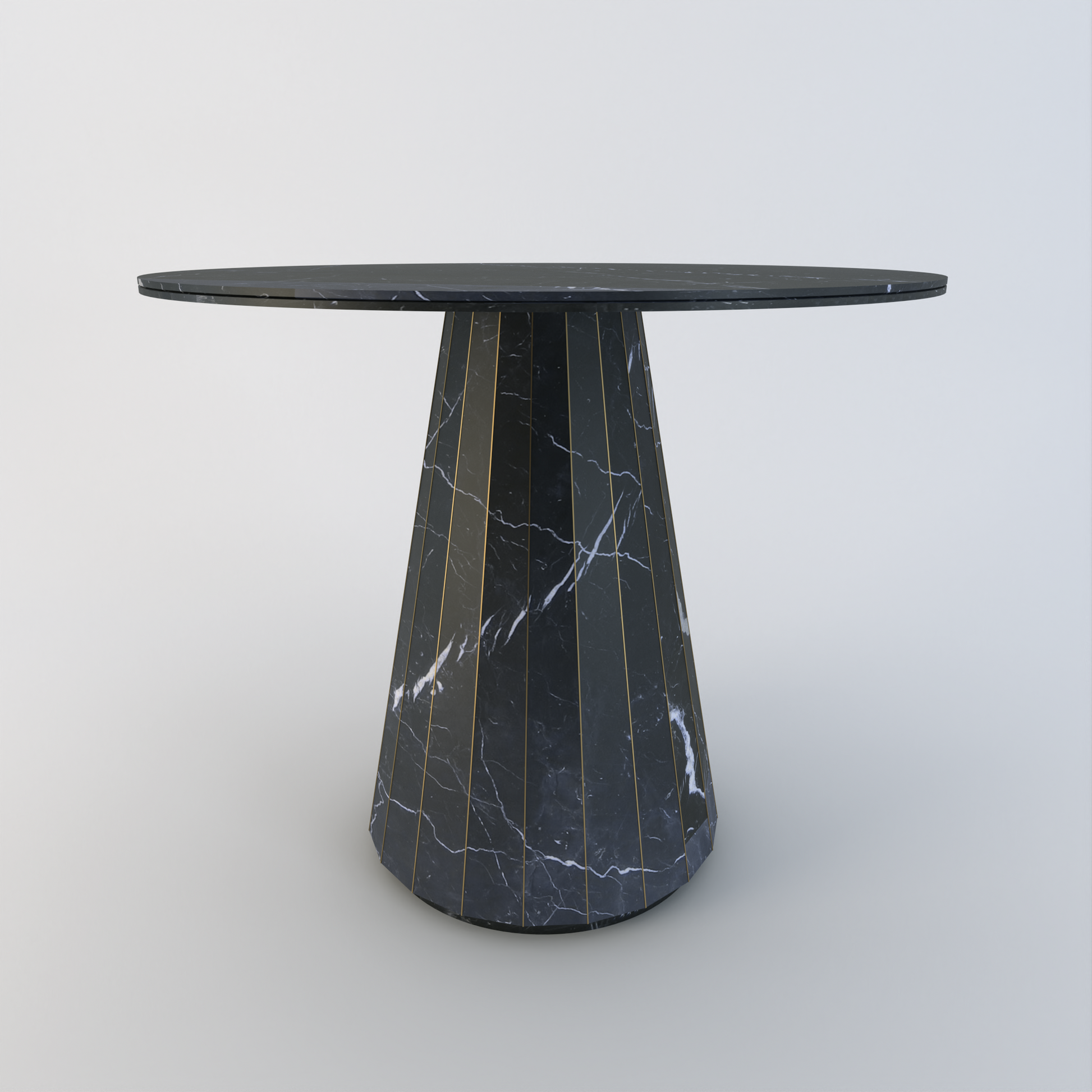 The conical base of the Lusso Bar Table has a polished brass inlay that sits slightly proud of the hand-crafted base to create a striking look of luxury.