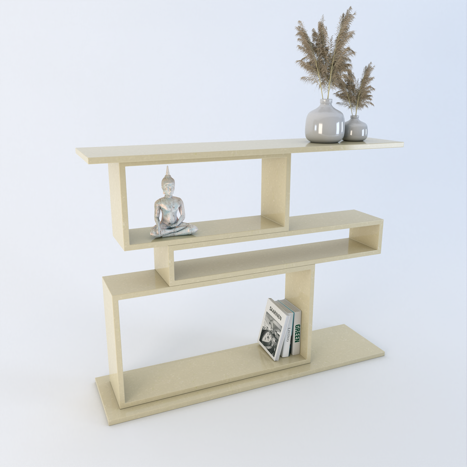 The Piazza console uses offset rectangles to make a gravity defying piece that is ideal for both modern and contemporary entrances and hallways.