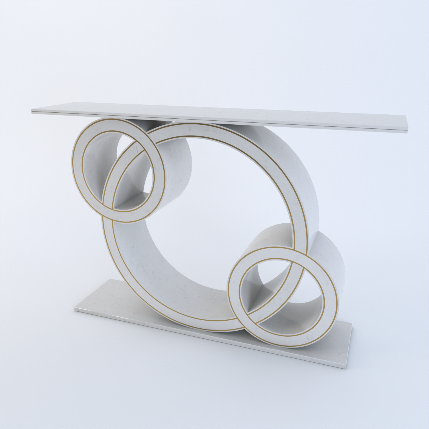 Make a real statement with the Sorrento Quartz Console table. Place it in any entryway to add style and interest. With a unique, modern design that uses interlocking circles to create a timeless piece that can be combined with the Sorrento Stone Dining Table to create an elegant and luxurious room set.
