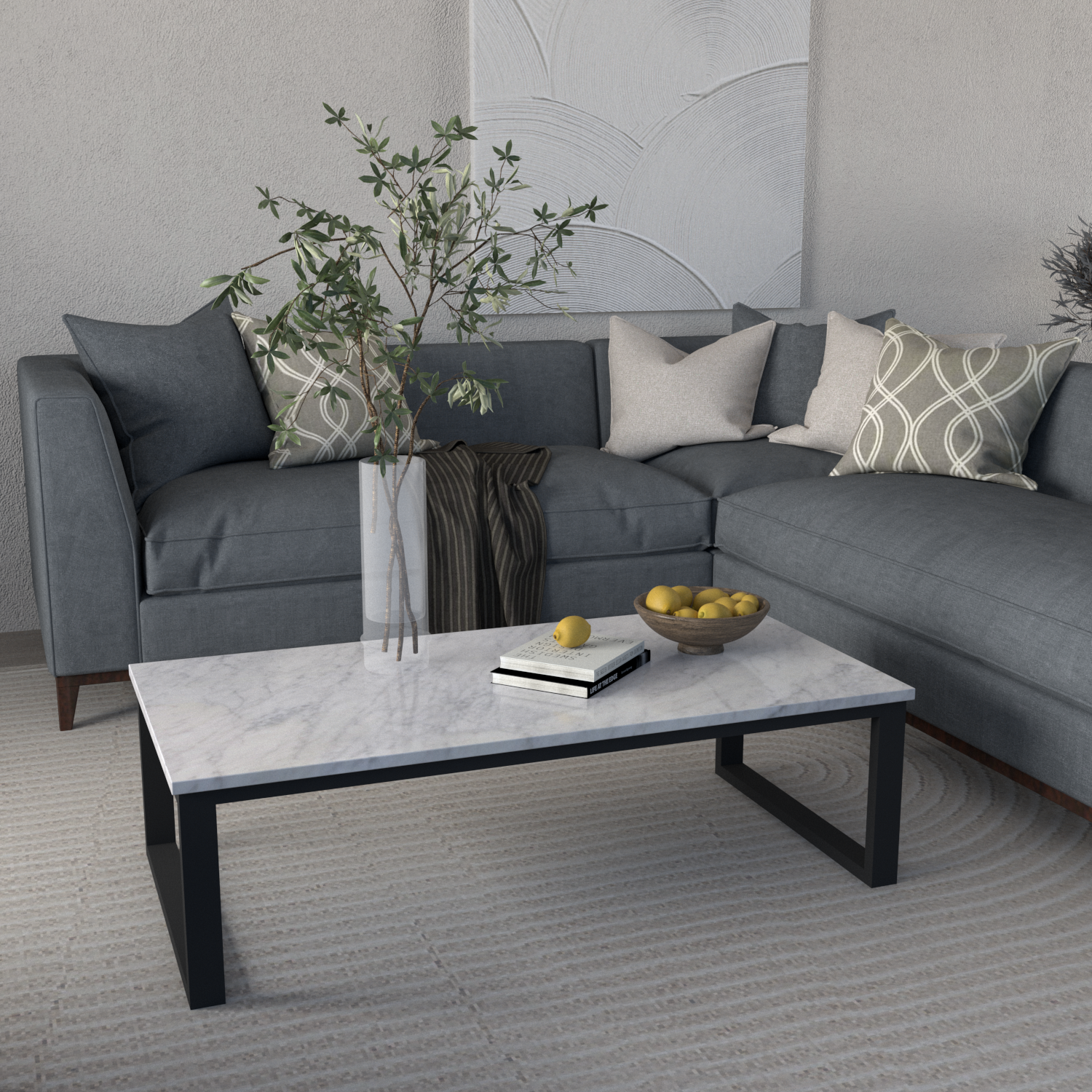 The Studio Marble Coffee table is modern, featuring crisp, metal lines and a sleek rectangular design. Its sturdy construction ensures long-term durability and stability. Perfect for the modern home, the Studio Coffee table adds a sophisticated touch to any living space. Matching console table available.
