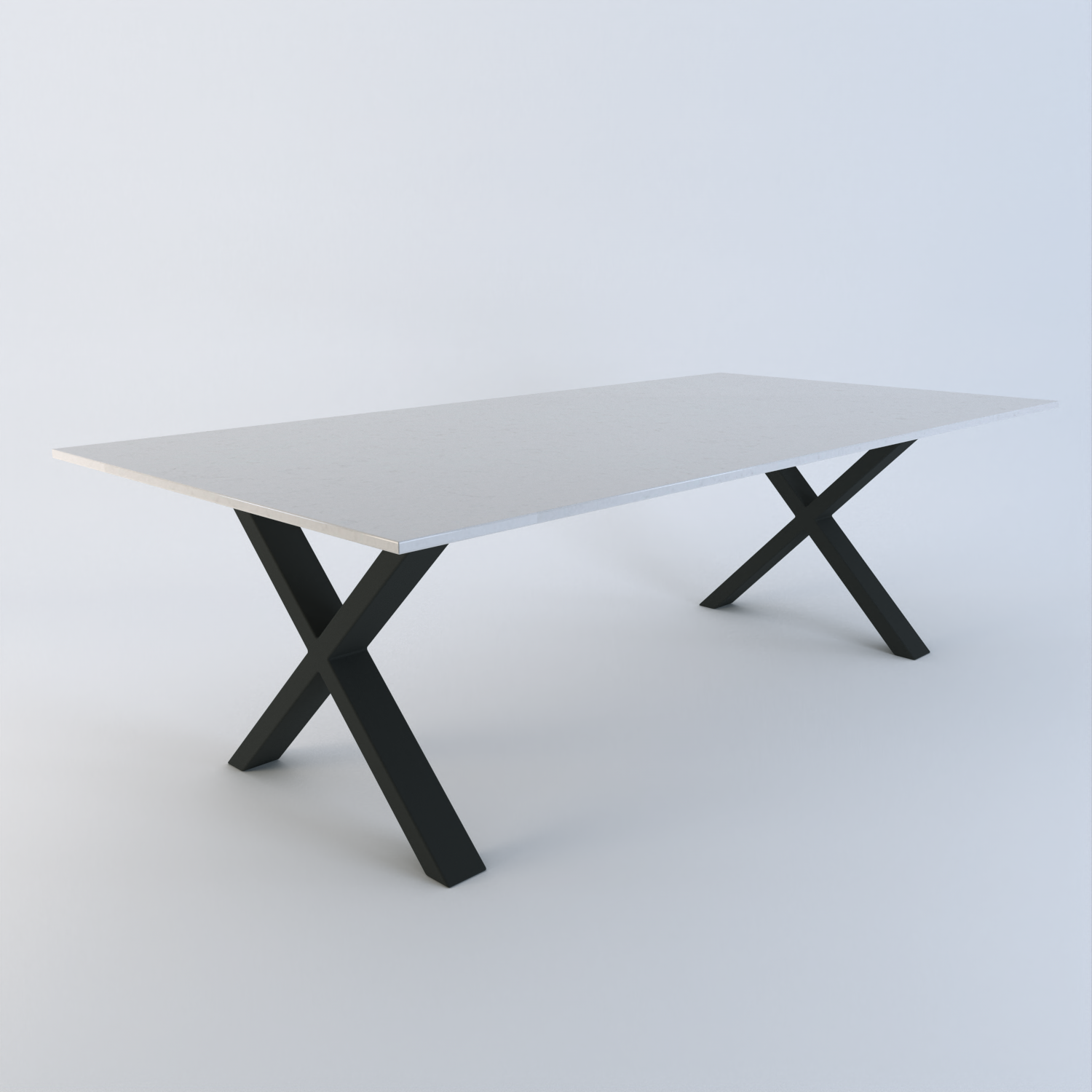 A traditional X frame that works in any kitchen, dining or office setting. We utilise a hidden frame support meaning that there are no unsightly supporting bars running underneath the table top that restrict legroom.