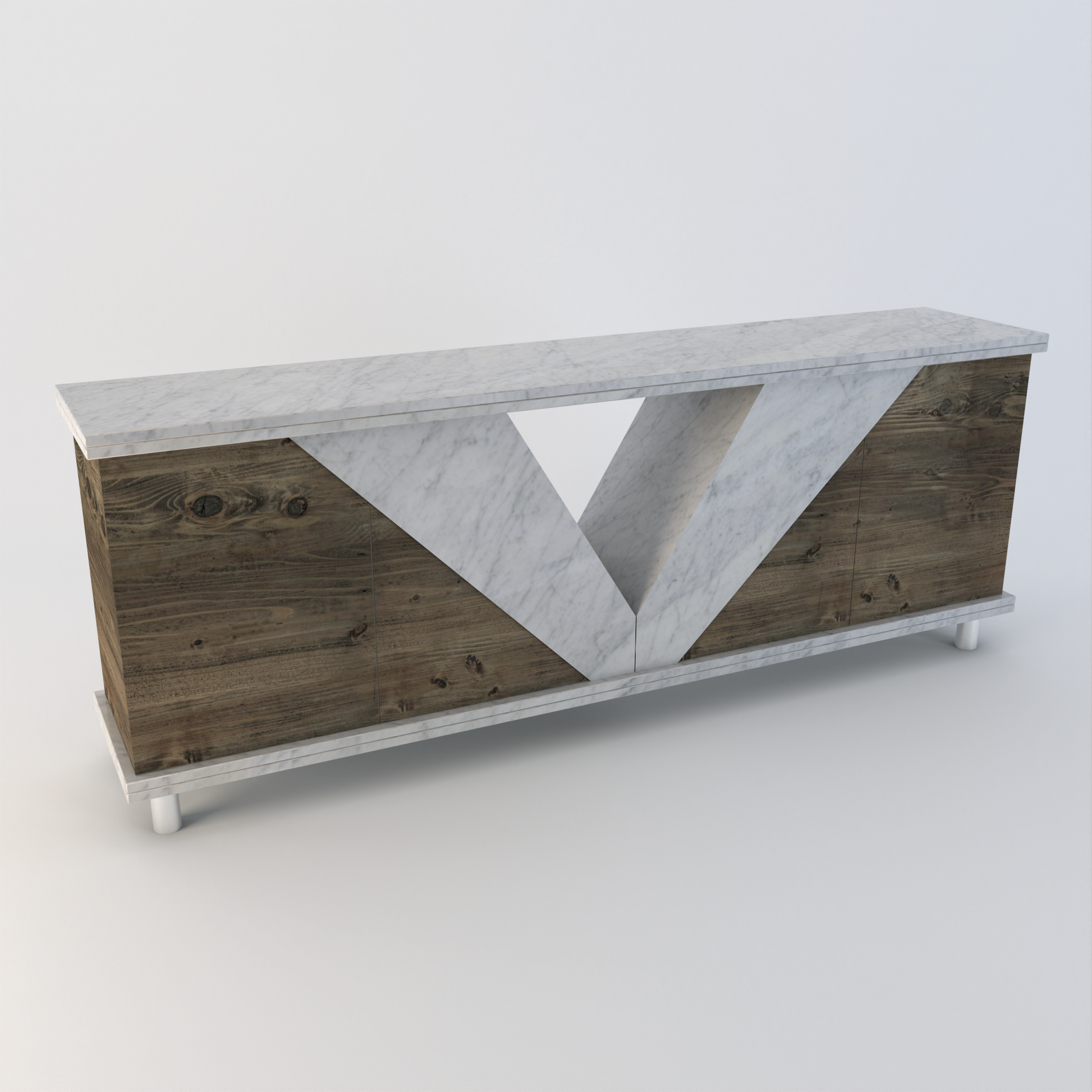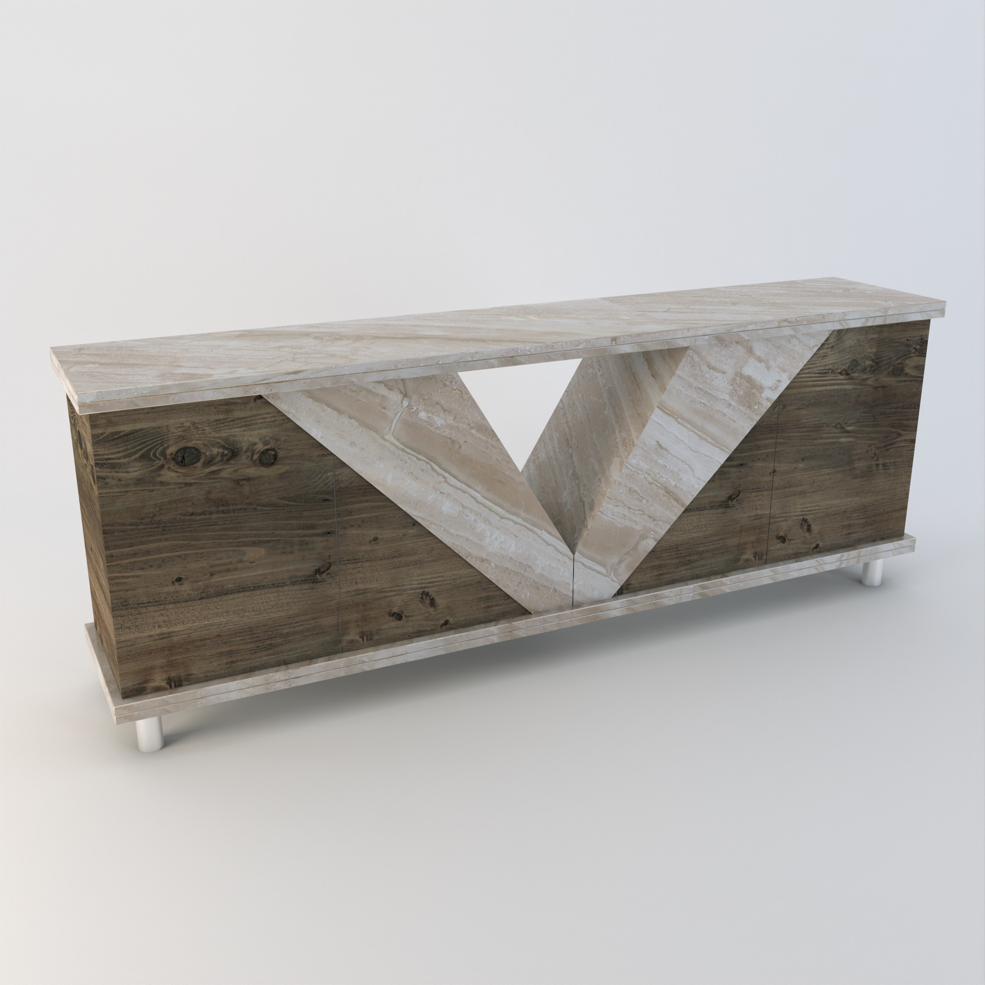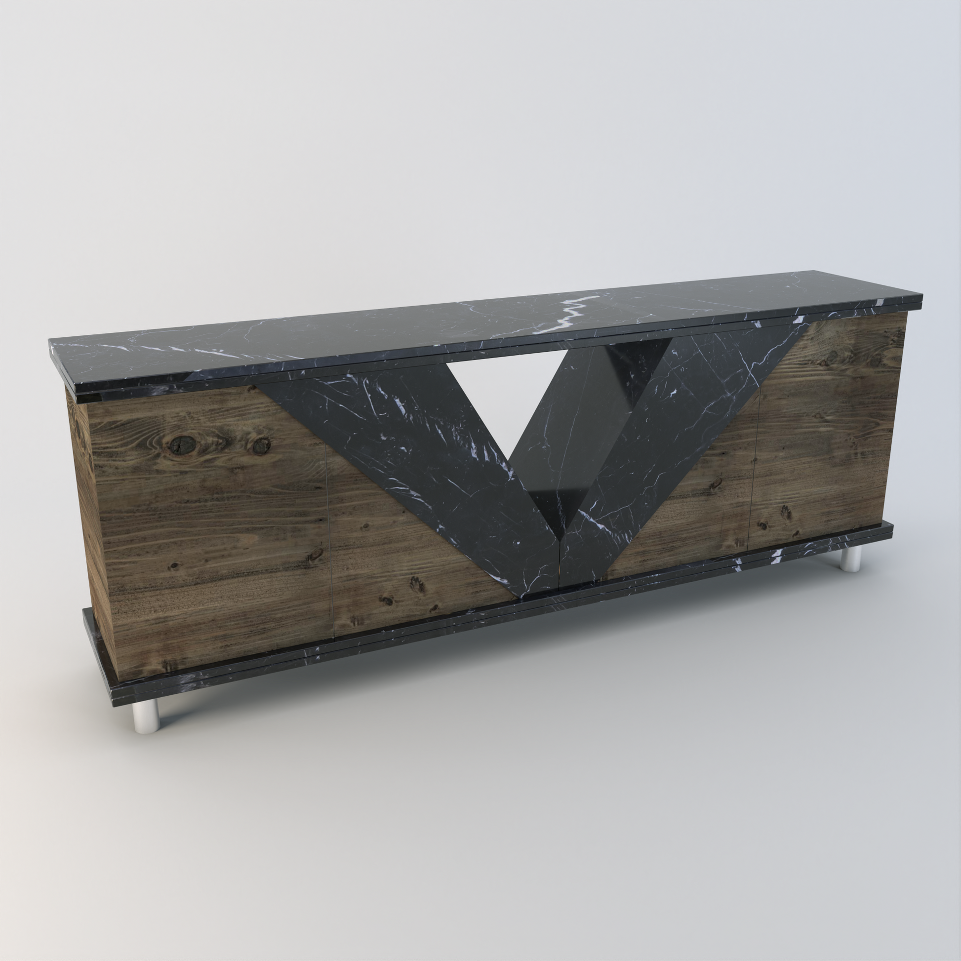 The Vittoria Sideboard takes the core V design element from our popular dining table and includes wooden storage cupboards within the stone.